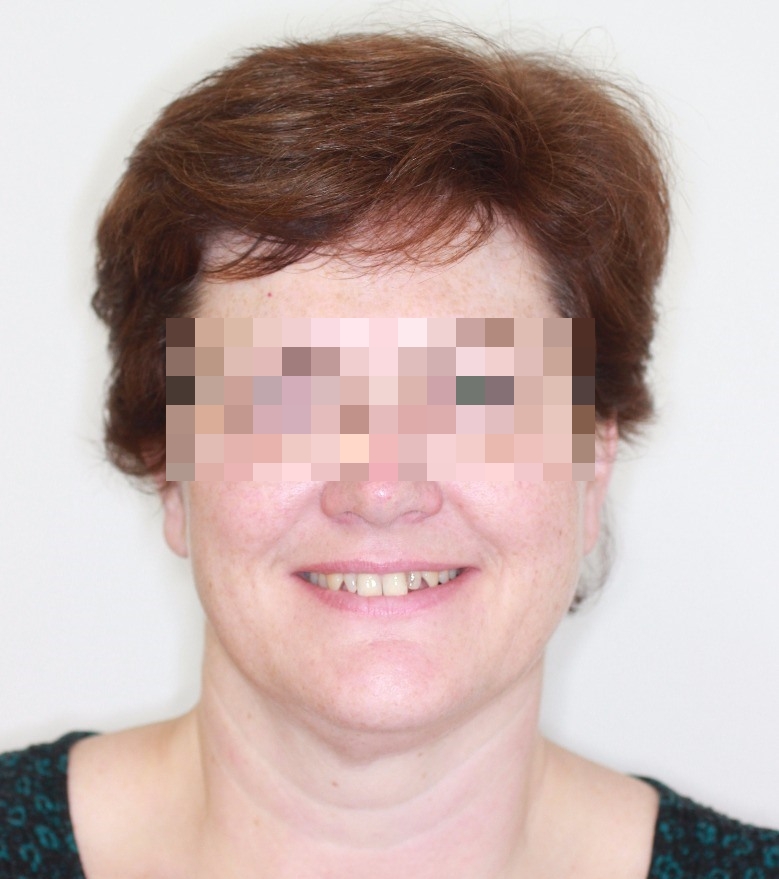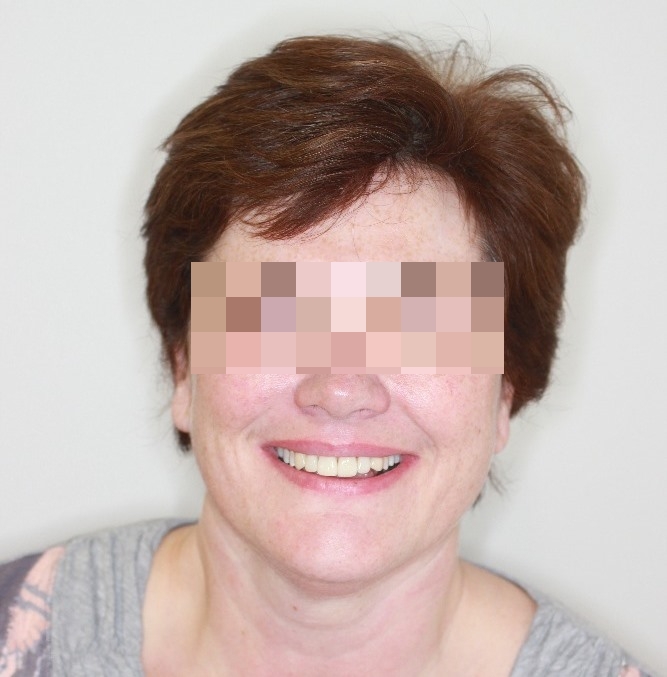 Pacientka nebyla dlouhodobě spokojena se svými zuby v oblasti úsměvu. Obrátila se proto na svého ošetřujícího lékaře, s nímž jsme díky důsledné spolupráci dosáhli výsledku, s jakým byla pacientka spokojena a nyní se zase může bezstarostně usmívat.